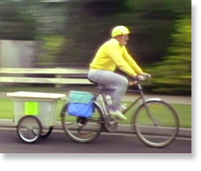 The shooting cycle On the 1st of December 1984, Alan Dyall set off to cover the Caltex Great Victorian Bike Ride. Organised as part of Victoria’s 150th birthday celebrations, Alan shot the nine day ride, cycling from Woodonga to Melbourne with more than 2000 other bike riders. In order to both ride and videotape the event, Alan organised his bike with a special trailer rig to safely house his videotape equipment. This clip is from the completed production and is narrated by Sally Hart. |