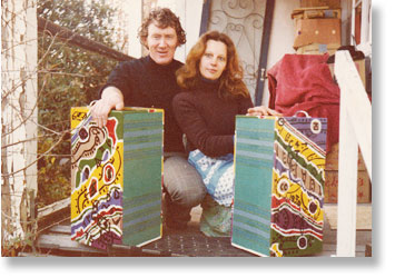 | Malcolm and Lassya with the speakers Alan Dyall painted | |||||||||||||
