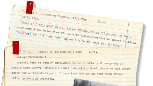 More than just videomakers The access video program in Melbourne’s West was based on the contribution of volunteer videomakers. Alan Dyall and Ted Peck, two original members of Turtle Video / Western Communications Co–Operative, were active videomakers. Both would be seen regularly organising their next project. Alan Dyall and Ted Peck did more than just shoot videotape. Alan Dyall Alan’s first introduction to video was in September 1974. Two weeks later he was involved in the shooting of the “Back to Altona” celebrations. Alan’s diary from the time talks of his friend John Huntley telling him about a shop in Altona called Turtle Video. |