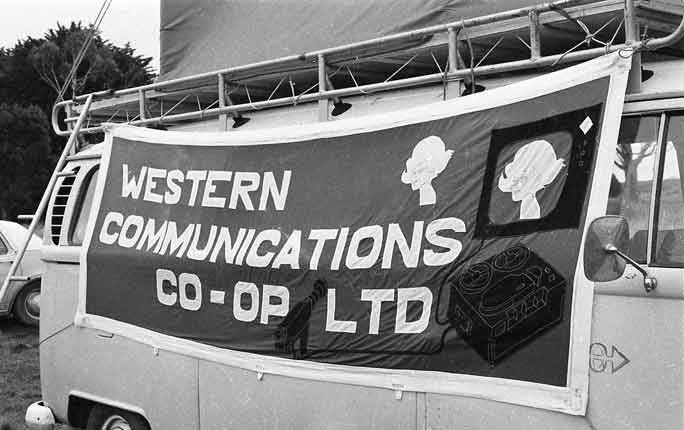 Alan Dyalls Kombi van on location displaying his Westcom banner.