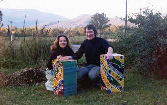 Malcolm Cormack and Lassya Maksymyschyn (Shive) with the speakers that Alan Dyall built and painted.