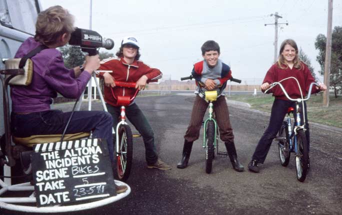 Shooting the "Arrow Video" production of "Altona Incidents" in May 1981. Alan had built a camera rig which was attached to the back of his van to allow smoother tracking shots of the bike riders.